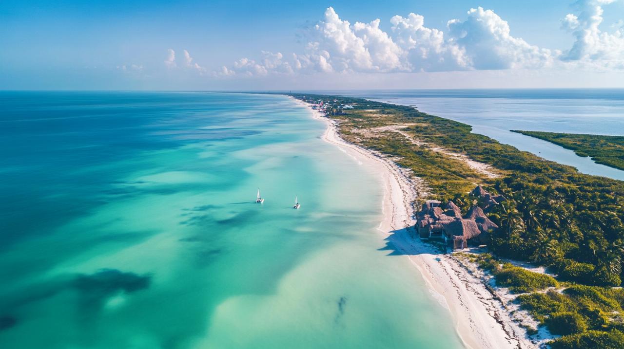 La isla ofrece varios tramos de costa, cada uno con su personalidad y atractivos particulares. Desde bancos de arena que emergen en marea baja hasta playas completamente vírgenes donde la única compañía son las aves marinas, Holbox satisface todos los gustos. La proximidad entre estas playas permite visitarlas todas durante una estancia de varios días, descubriendo así los diferentes rostros de este paraíso caribeño.